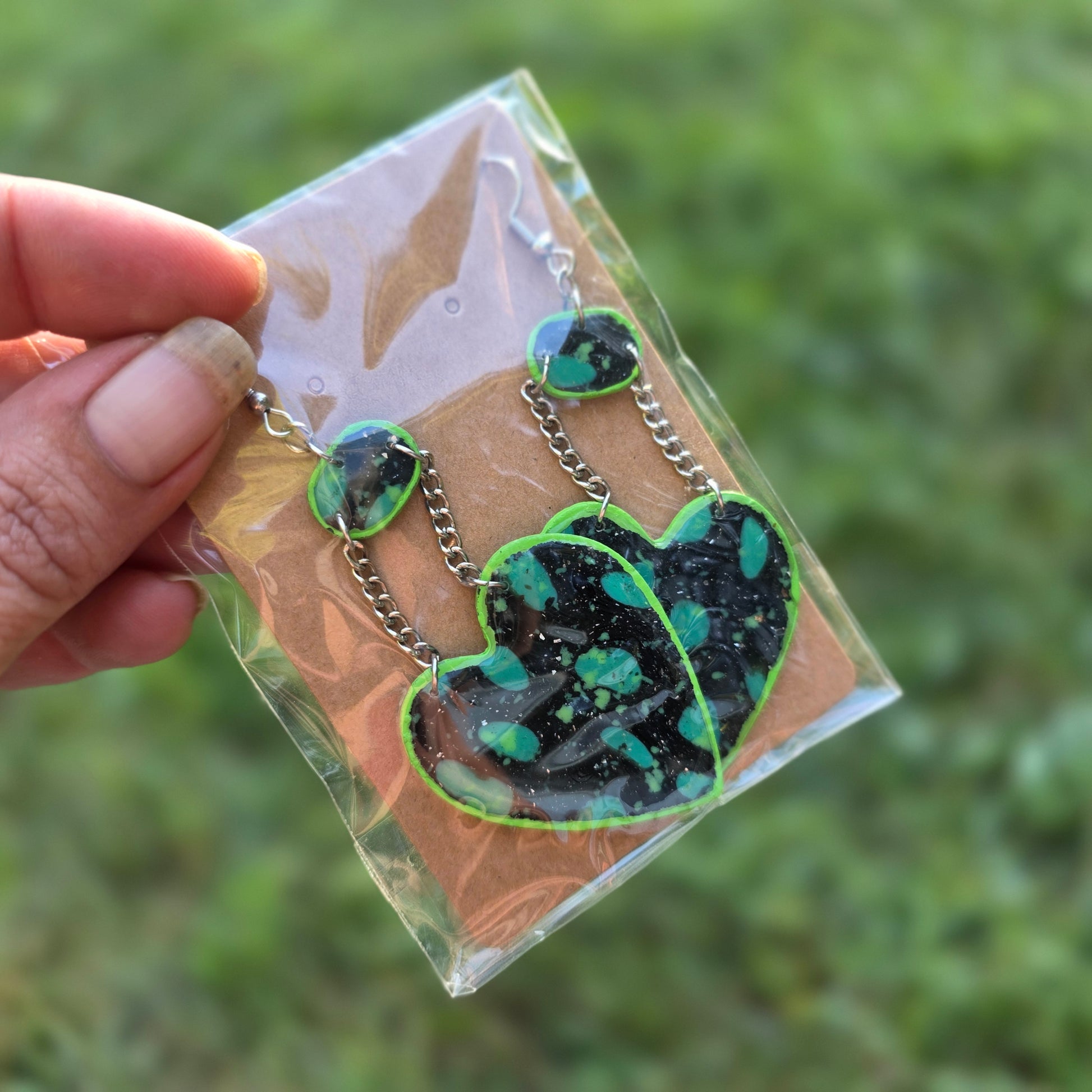 Hook earrings. Polymer clay, uv resin, steel. Uv reactive/glow.