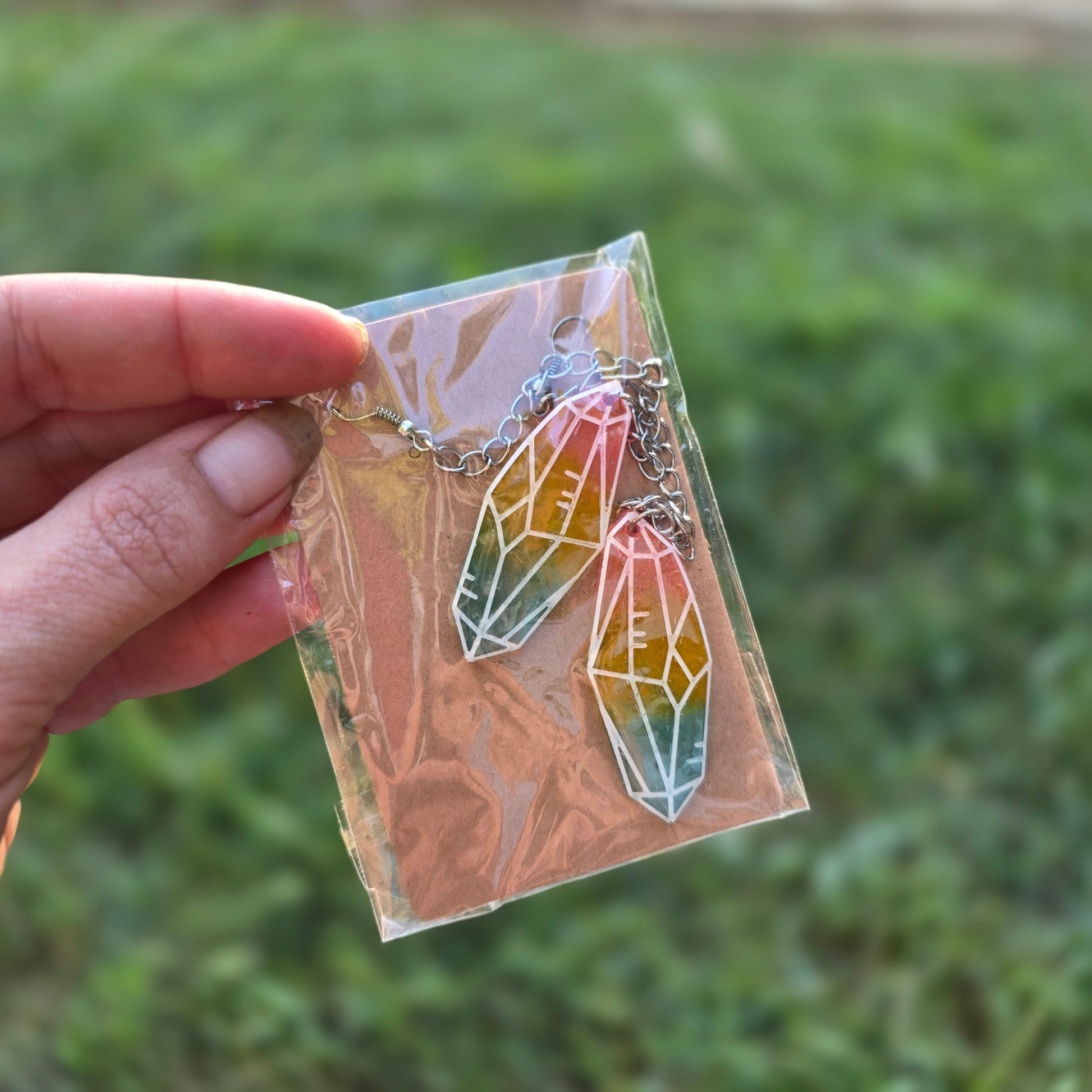Hook earrings. Long. Dangle. UV resin, steel. UV reactive!