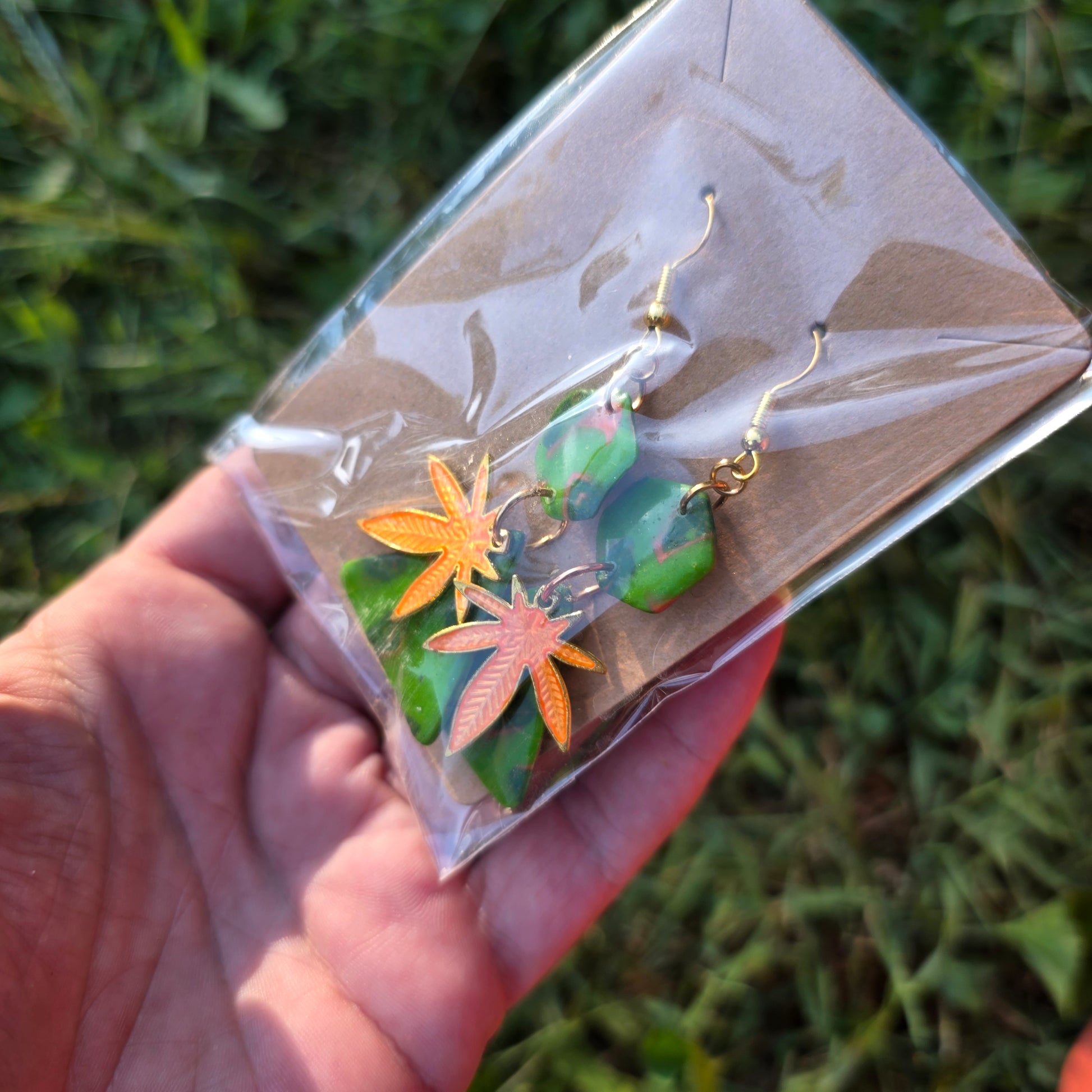 Hook earrings. Polymer clay, uv resin, steel. Glow in the dark/UV reactive.