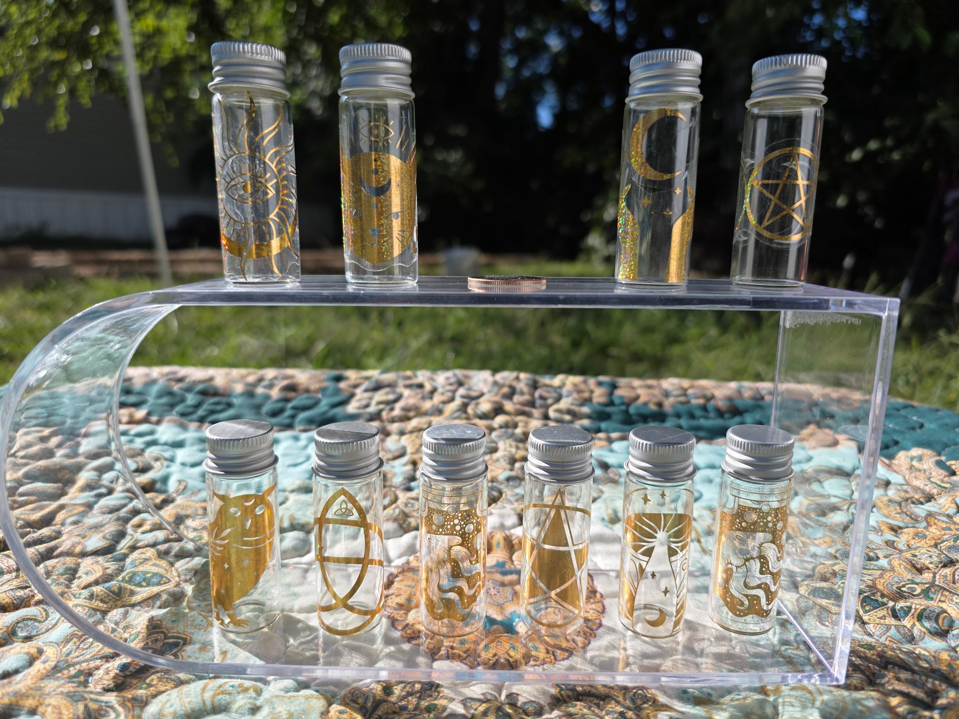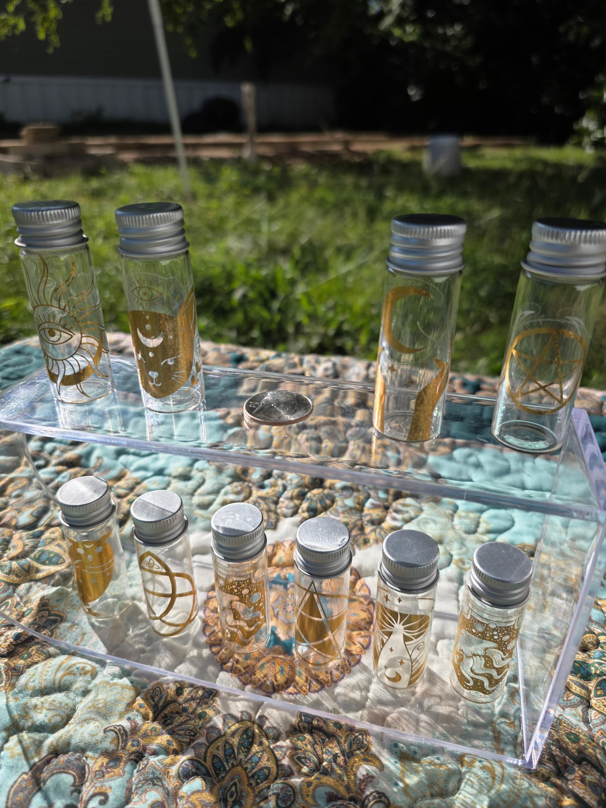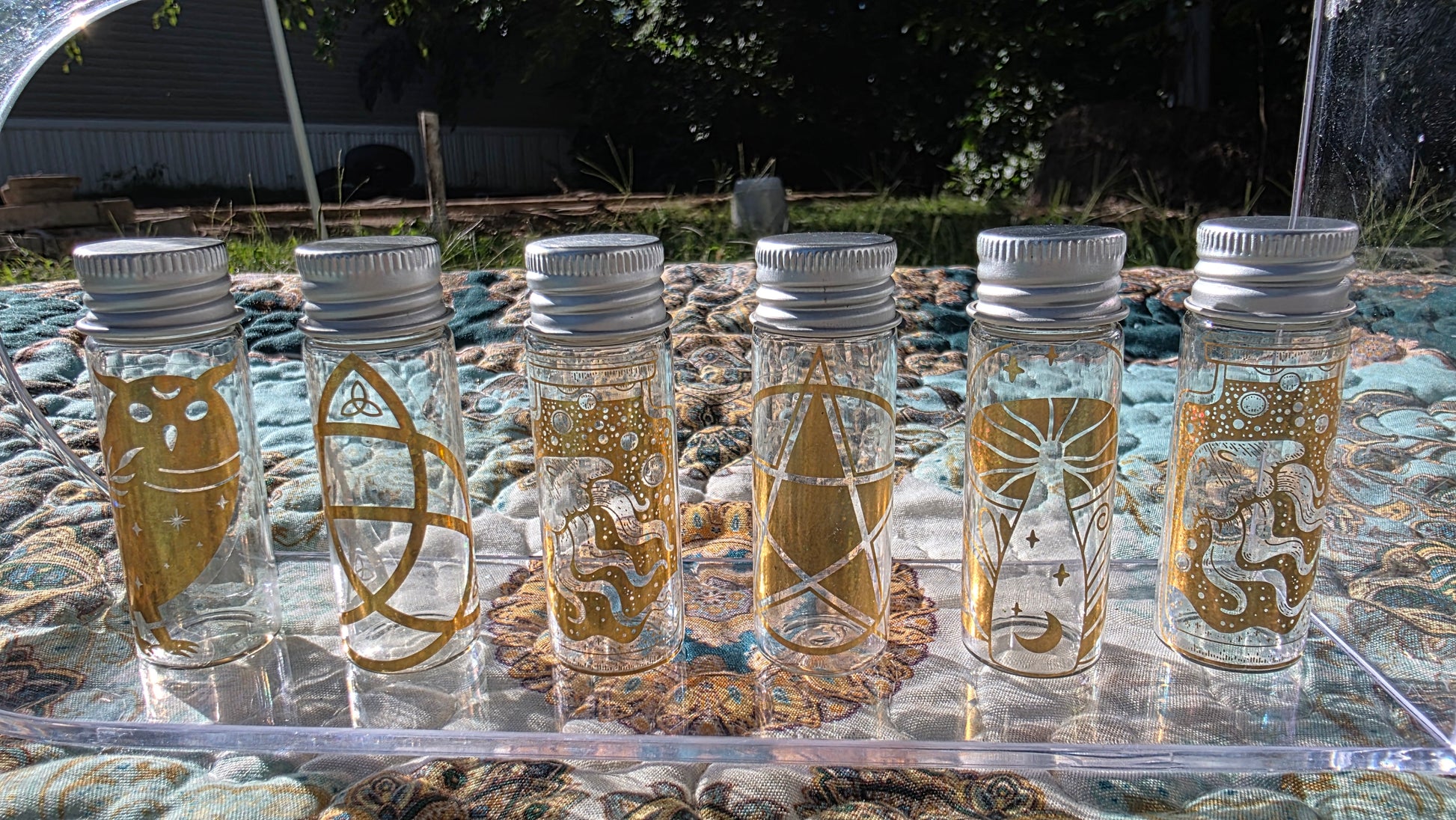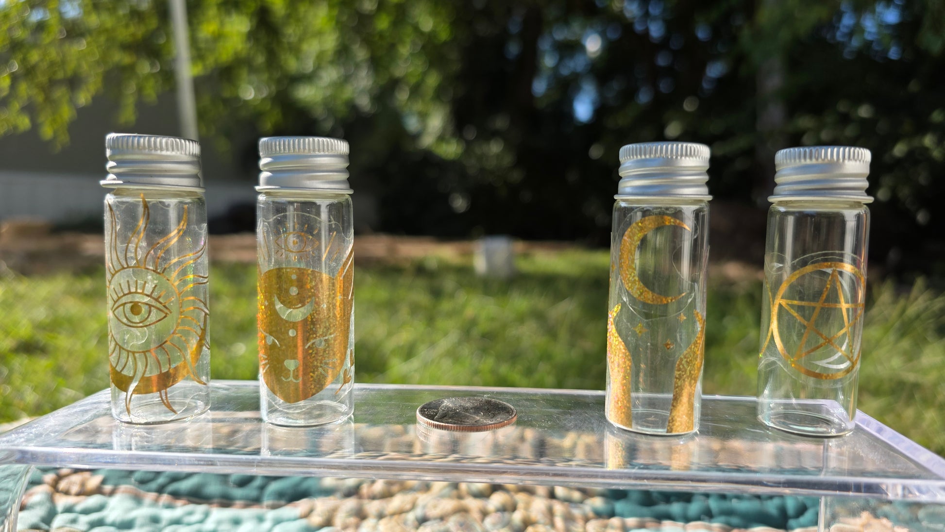 Glass, metal. 1 oz jar. You can put your tweed in there..