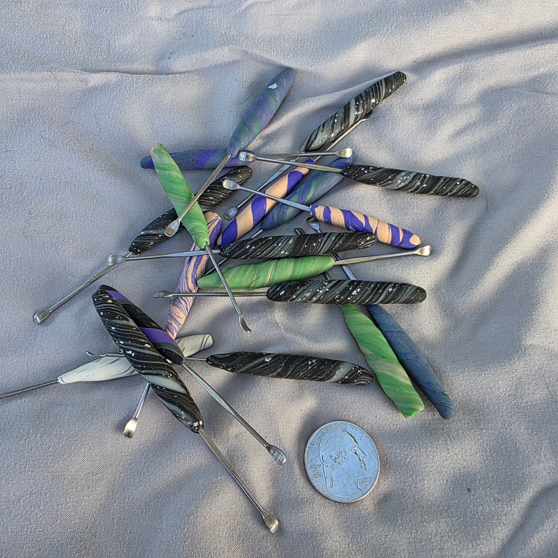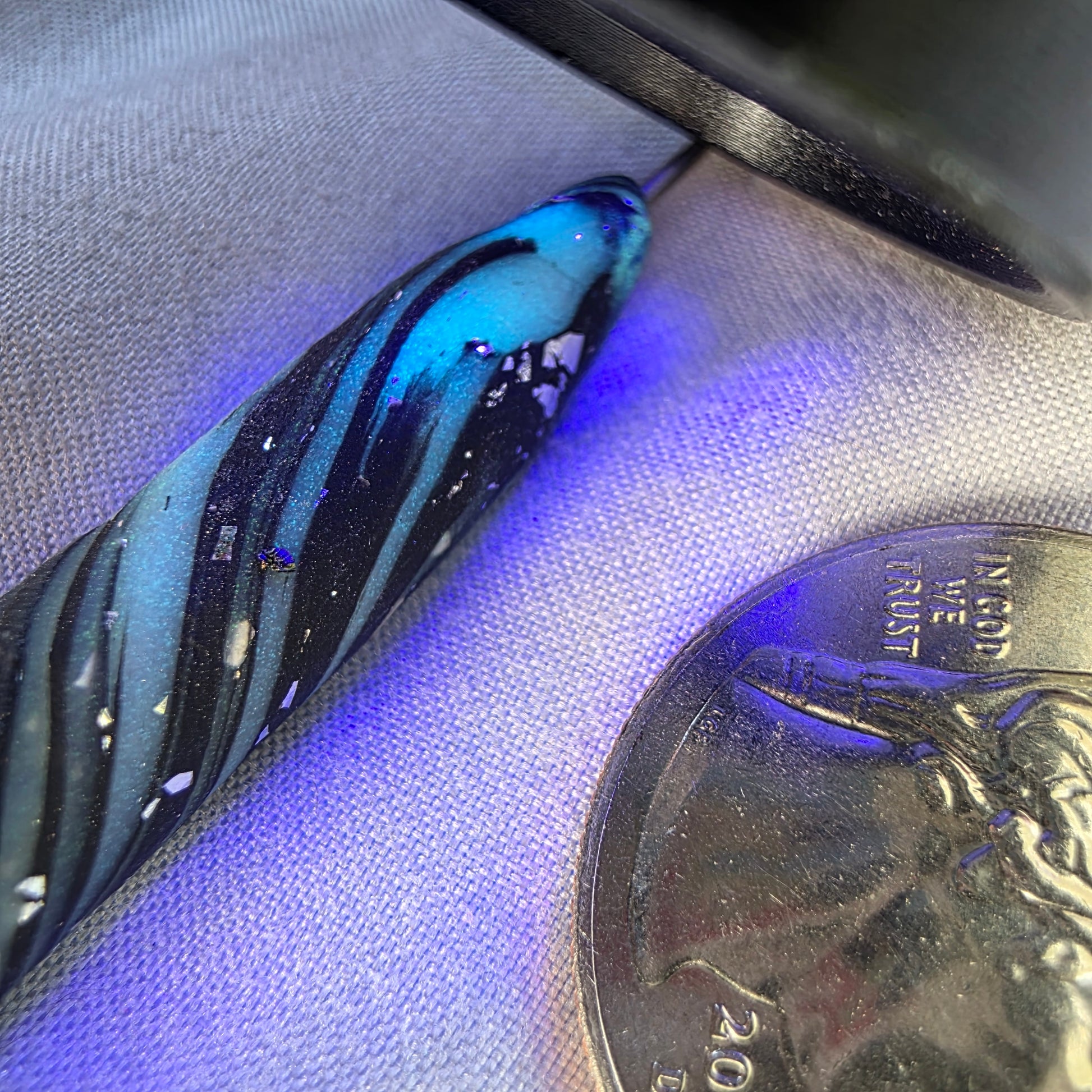 Polymer & steel. Some glow in the dark and/or UV reactive!